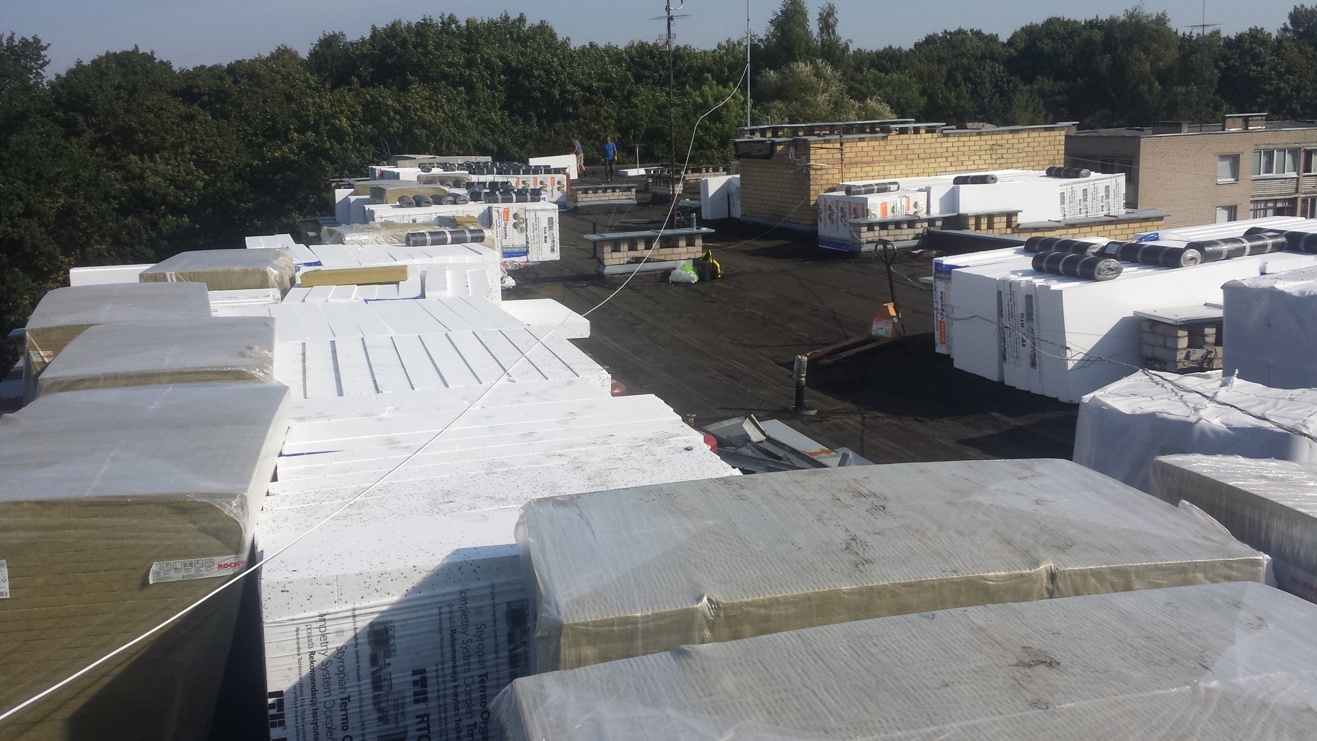 Atliekant stogo įrengimo darbai , numatoma apšiltinti: 200mm storio polistireninio putplasčio plokštėmis, akmens vata 40mm. Viršutinė ir apatinė danga.